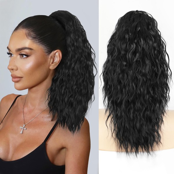 ALXNAN Claw Clip Ponytail,18 Inch Black Ponytail Extension for Women Synthetic Long Curly Wavy Clip in Ponytail Hair Extensions Synthetic Hairpiece for Daily Party Use