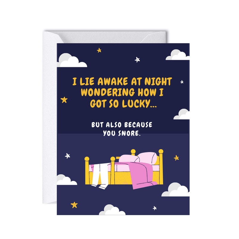 ALY LOU Funny Anniversary Card Birthday Card for Her Him / Husband Boyfriend / Girlfriend Wife / Sarcastic Greeting Card (I lie awake at night wondering how I got to lucky ... snore)