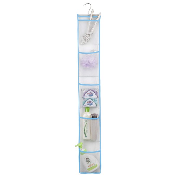 ALYER Hanging Storage Shower Caddy Organizer with Hanger,Mesh Pockets for Bathroom,Closet,Pantry (Blue)