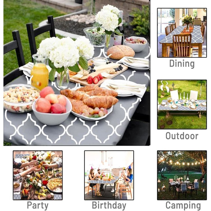 - ★ Unique Design & Beautiful: Vinyl table cloth featuring flannel backing and elastic edges keep the tablecloth tightly fitted and stay free from moving/falling off. This gray fitted vinyl tablecloth absolutely adds noble and tasteful feel to your home!