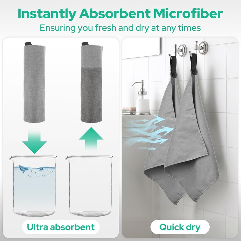 - đăPortableăThe camping towels quick dry are lightweight and compact, easy to fold and carry, and takes up little space. It comes in a breathable zippered case, suitable for travel, professional sports training, and daily use. It also features a snap button for easy hanging anywhere.
