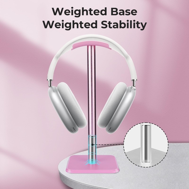 Alyvisun Headphones Stand [Weighted Base & Taller Height] Headset Holder Stand, Universal Headset Desk Hook for All Gaming Headset/Desktop Earphones, Pink