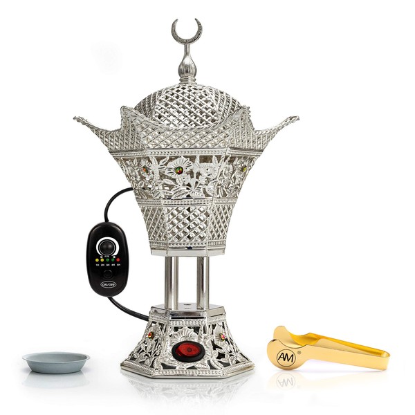 AM Regulator Electric Incense Burner - Oud Frankincense Resin Burner with Adjustable Timer - Hilal (Silver)