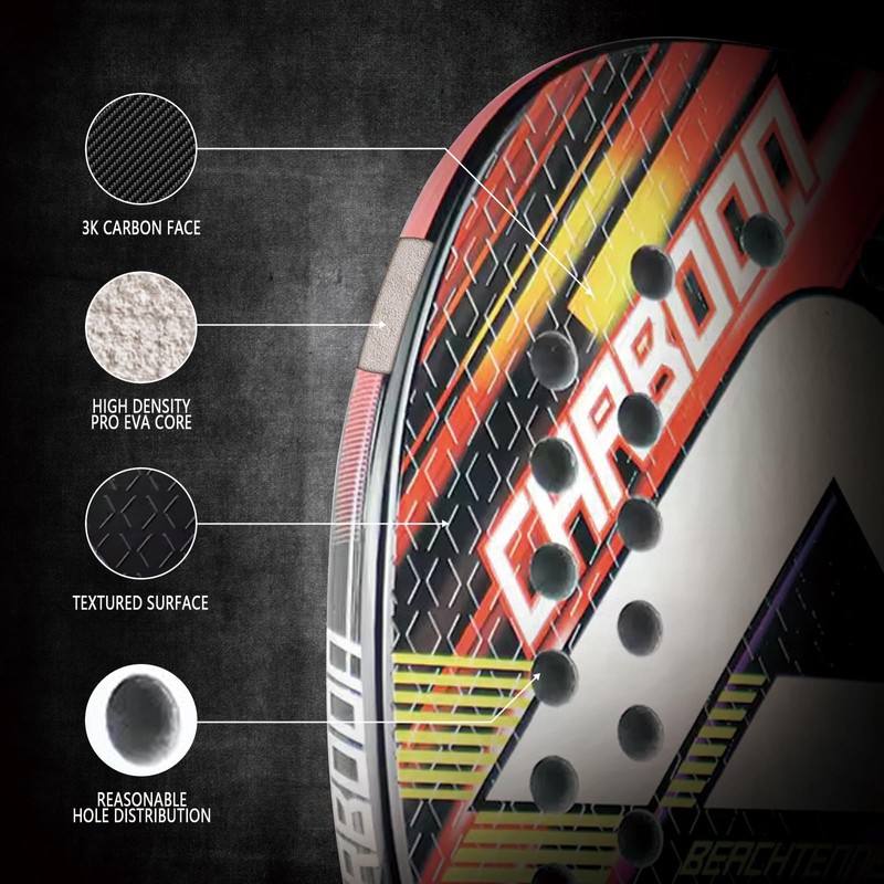 - 【ADVANCED MATERIAL】Professional 3K carbon fiber surface makes the beach tennis racket more robust against the impact of high-speed ball. High density Pro EVA foam core absorbs the impact and provides better feel on their strokes.