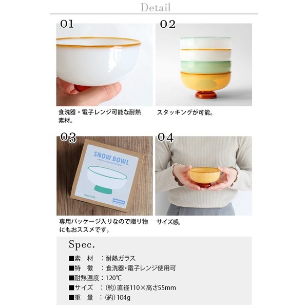 - Size: Approx. Diameter 4.3 inches (110 mm) x Height 2.2 inches (55 mm); Weight: Approx. 3.5 oz (104 g); Material: Heat resistant glass; Note: Dishwasher and microwave safe; Heat resistant temperature: 248°F (120°C)