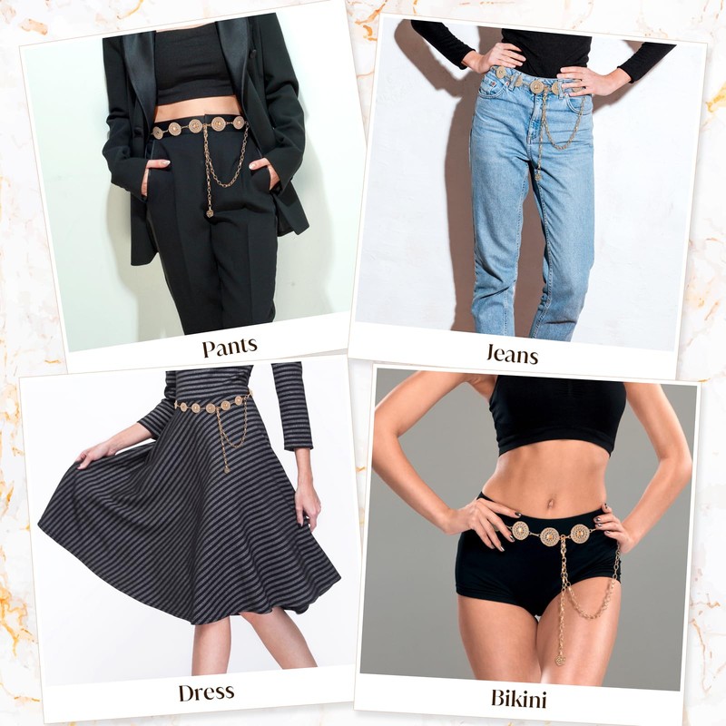 3. Our western chain belt is great to match with your dresses, skirts, shirts, jeans, leather pants, bikini suits, western, boho, formal, casual, vacation wear styles, or daily wear.