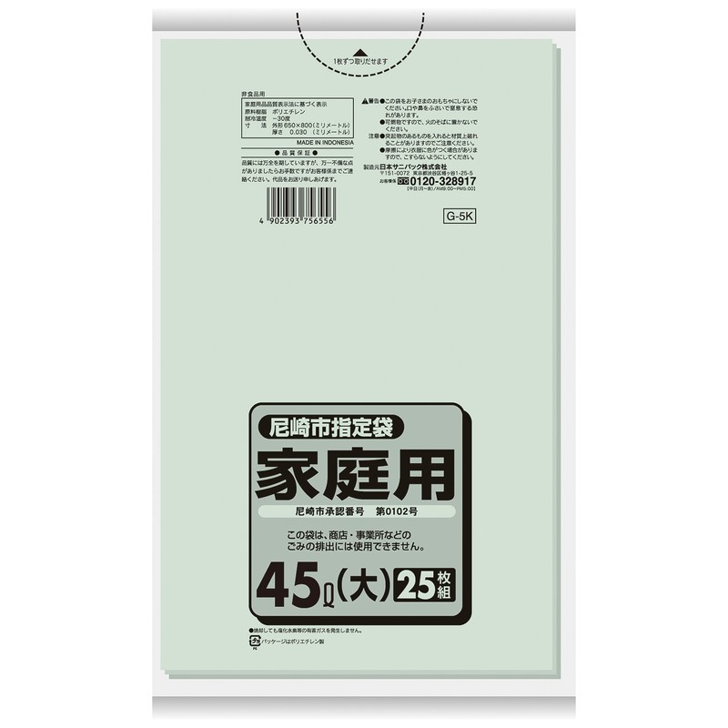 Amagasaki City Designated Trash Bags, Household Use, 10.9 gal (45 L), 25 Bags