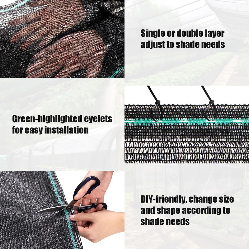 - DIY Dream & Easy Installation: Featuring eye-catching green-highlighted eyelets along the long side, our shade cloth comes with 150 zip-ties for a cinch of an install, edges are double-thickened, tough against tears and damage. Plus, it's custom-cut friendly, shape and size it to your exact shade needs