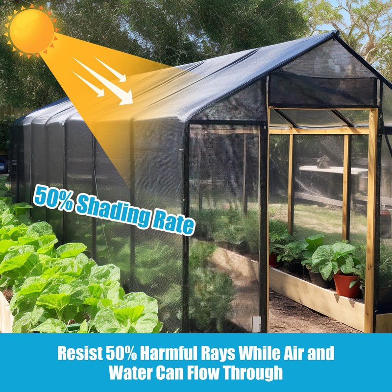 - 50% Shade Protection: HDPE and UV-resistant materials allow the shade cloth to block up to 50% of direct and harmful rays. Cuts heat by 30 - 50°F, shielding plants and animals from sun harm, keeping them cool and safe under its cover