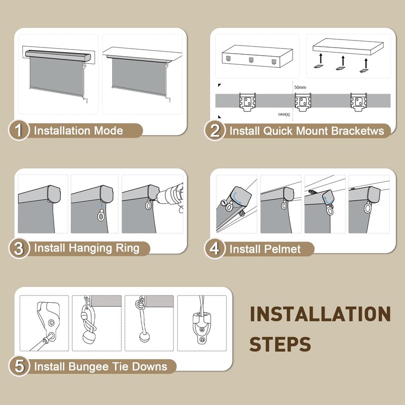 - 【Easy to Install】You can easily install these porch blinds on the wall or ceiling. The package comes with a detailed user guide, bracket and all necessary accessories.Even solo, you can get it done in under 15 minutes.