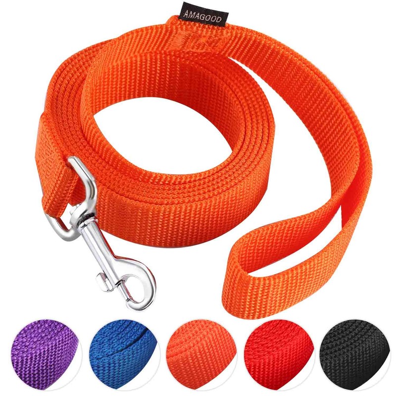 AMAGOOD 6 FT Puppy/Dog Leash, Strong and Durable Traditional Style Leash with Easy to Use Collar Hook,3/8" 5/8" 3/4" 1" Dog Lead Great for Small and Medium and Large Dog(Orange,1" x 6 Feet)