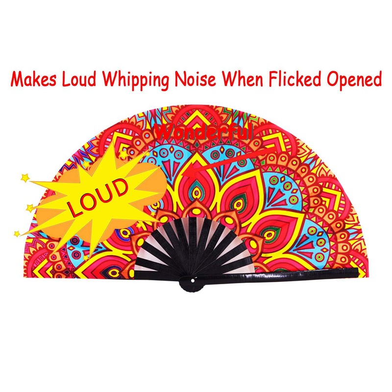 Amajiji Rave Fans Large Folding Hand Fan Popping Fan for Line Dancing, Big Clacking Clap Fans Foldable for Boots On The Ground Dance,Music Festival, Party (Fantasy Flowers)