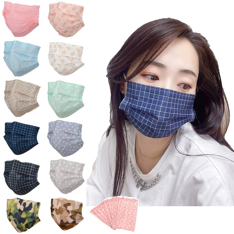 • ■おしゃれに楽しく水玉、花柄、チェック、迷彩柄、ハートモチーフの不織布マスク