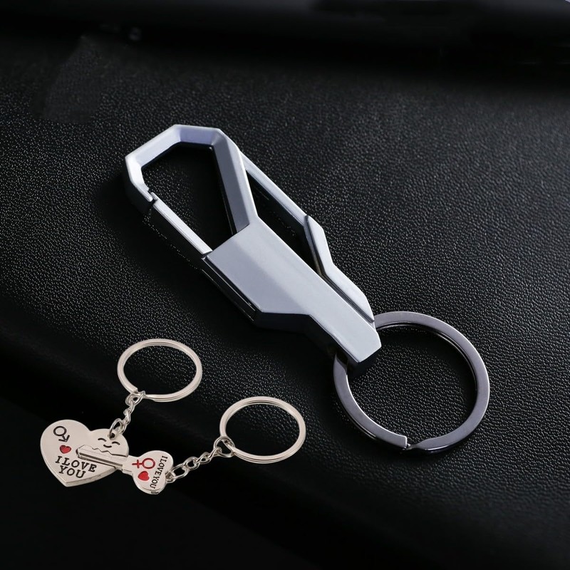 AMAMCIN Men's Lady Key Chain Car Key Chain with Key Pendant Double Ring Keychain Carabiner Hook Stylish Lightweight Bicycle Gift Keychain, Silver