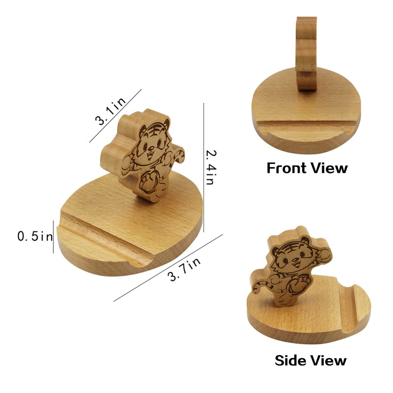 Amamcy Cute Tiger Cell Phone Holder Stand Wooden Smartphone Desk Holder for All Mobile Phone Animal Phone Stand Desk Ornament