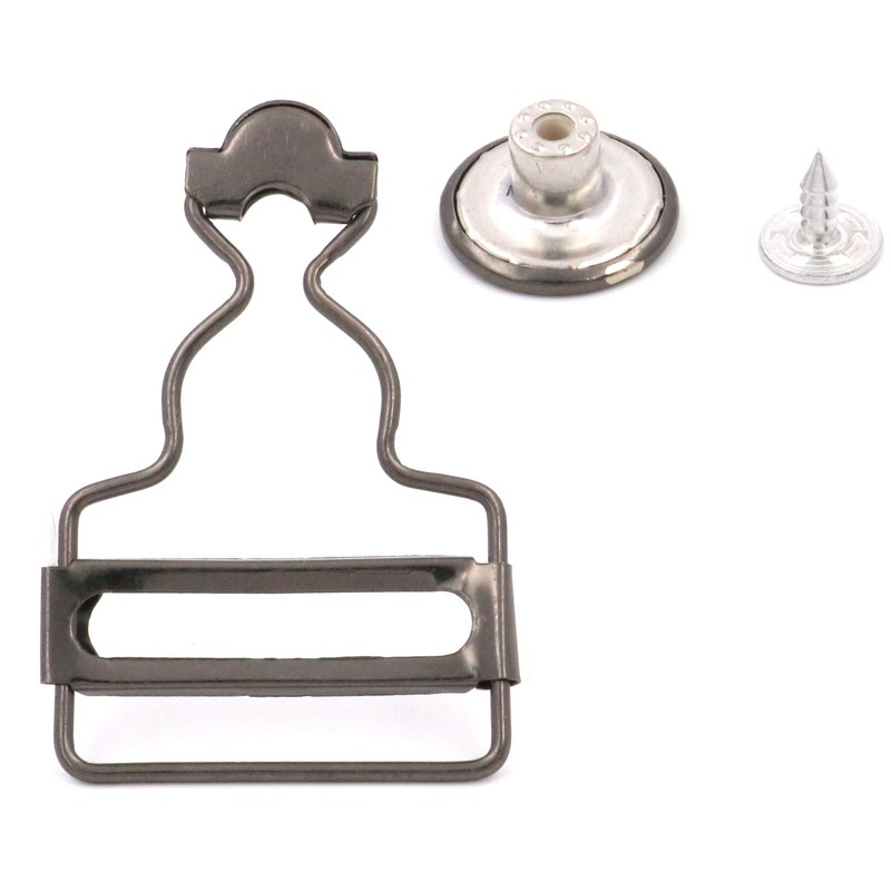 Amanaote 1.25¡± Inside Bottom Width Gun Color Slider Dungaree Fastener Overall Clip Suspender Buckle with Screw Button Pack of 10 Sets