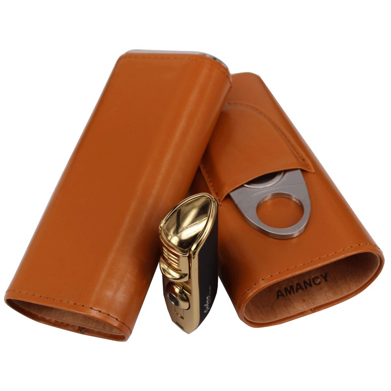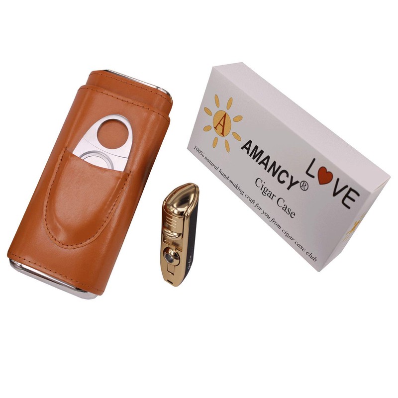 AMANCY Classy Cigar Case Kit with 3 Triple Jet Cigar Lighter and Cutter Great Gift Set