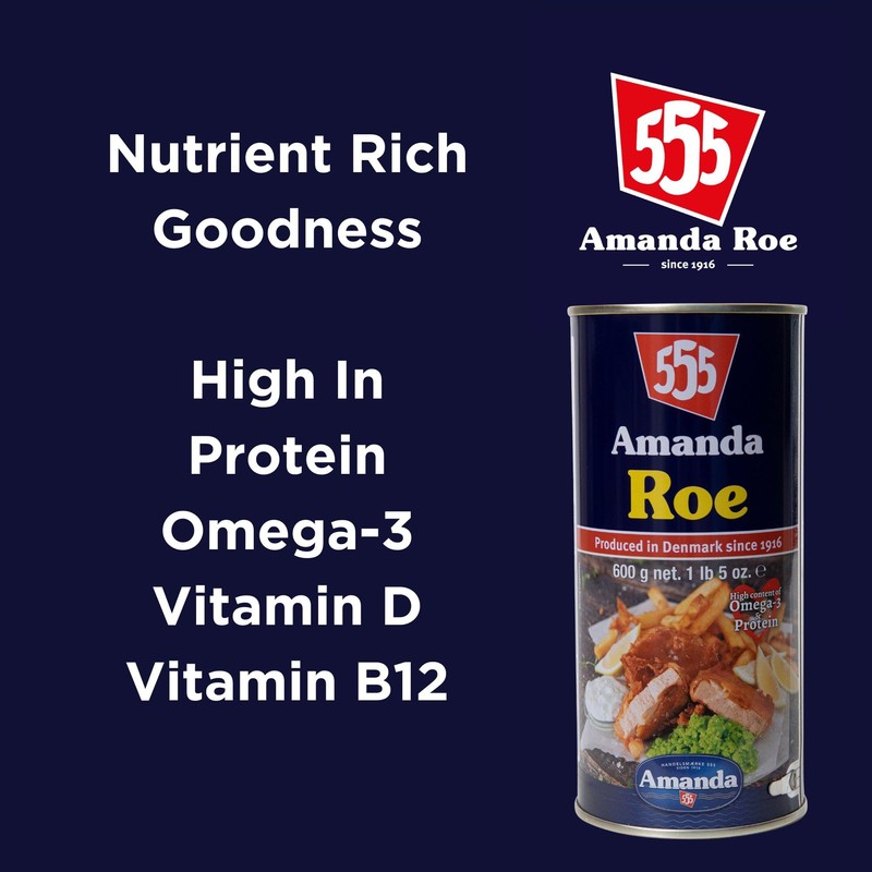 Amanda Amanda 555: Tinned Cod Roe | The Original Cod Roe | High in Protein Omega 3 Vitamin D & B12 | MSC Certified, Sustainable, and Delicious | Perfect for Home or Fish & Chip Shops (600g)