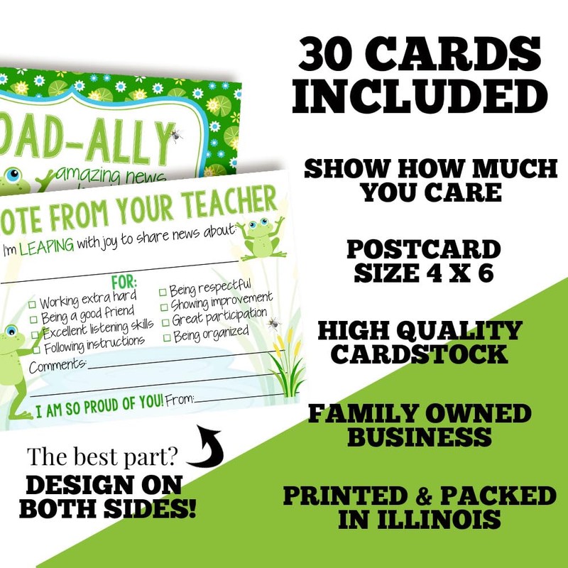 Bigger... Better... and Best of All... Cuter. Presenting Happy Mail! Frog Teacher Mail for Students – 30 4”x6” Fill In Postcards TOAD-ALLY awesome News Brag Cards Bulk Positive Notes to Send Home to Parents Mailbox Cute & Inspirational Student Encouragement, Inspiration & Appreciation by Amanda Creation. Designed by a Mom for Teachers. Set of 30 Teacher Happy Mail Notes Perfect for Teachers to Give to Students