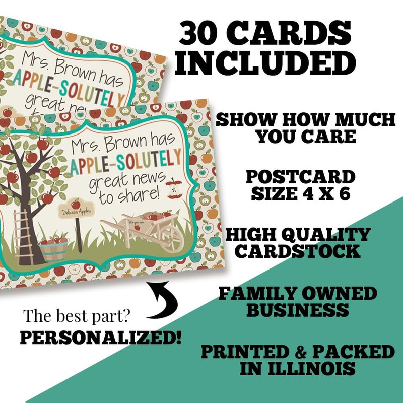 - Personalized Fall Happy Mail Teacher Notes for Students: Calling All Teachers! Designed by a talented mom, these brag cards for students will help get your new students excited for the upcoming school year! These adorable apple tree themed pun filled postcards are perfect for recognizing students throughout the school year! You'll want to APPLE-SOLUTELY share the great news with your students all the time! Also, a great Fall Teacher Appreciation gift! Amanda Creation. Original design by Amanda Creation