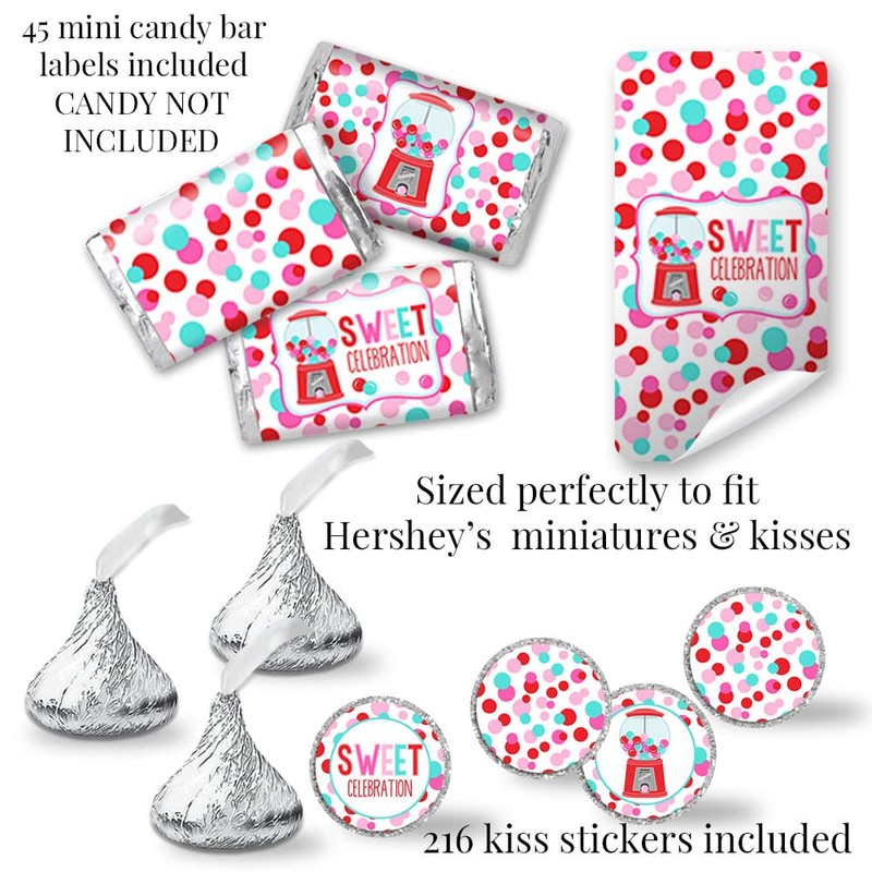 - Everything Included: The 2 inch circle stickers are pre-cut and ready for a variety of uses. The smaller kiss stickers are designed to fit on the bottom of your favorite chocolate kisses. The mini candy bar sticker labels will wrap around your favorite mini candy bars, completely covering the original label for a streamlined look. The waterproof water bottle wrap-around labels make it easy to turn your beverages into instant coordinating decorations that are practical too.