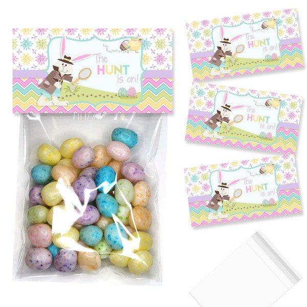 Amanda Creation The Hunt Is On Bunny Detective Easter Egg Hunt Themed Bag Toppers for Party Favor Treat Bags, Set of 20 Bag Toppers With 20 Self-Adhesive Bags Also Included