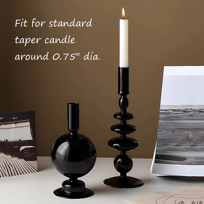 - 【Wholly Glass】 - This black candle holder set is wholly made of glass. Handmade in traditional process, we bring you the modern style candle stick candle holder.