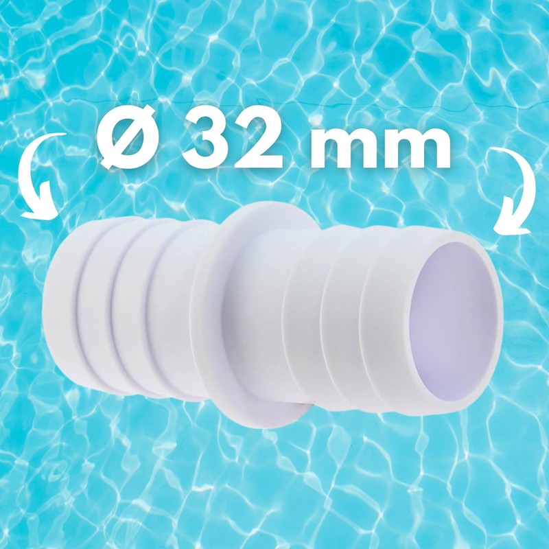 - With the 32 mm hose adapter, you can easily connect or extend pool hoses with an inner diameter of 32 mm.