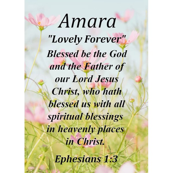 Amara "Lovely Forever" Keepsake Name Meaning Card with Bible Verse