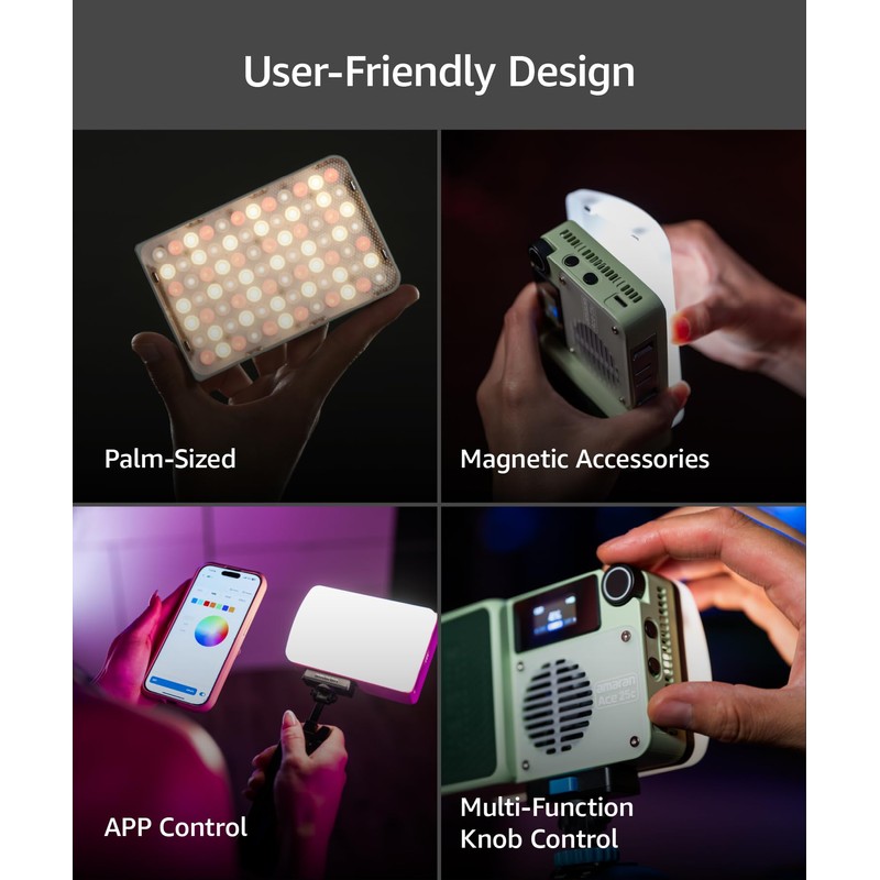 - amaran Ace Lock Quick Mount: One-second installation and removal.Compatible with various camera mounts and accessories, can be easily attached to your camera, tripod, or other equipment for versatile lighting setups.