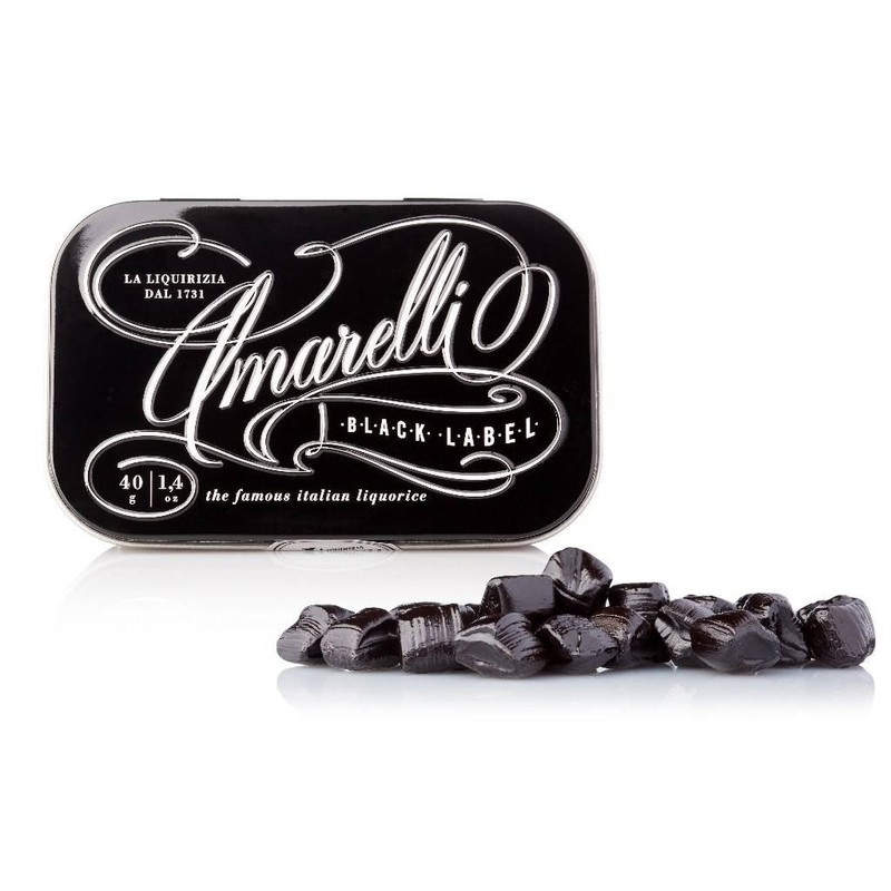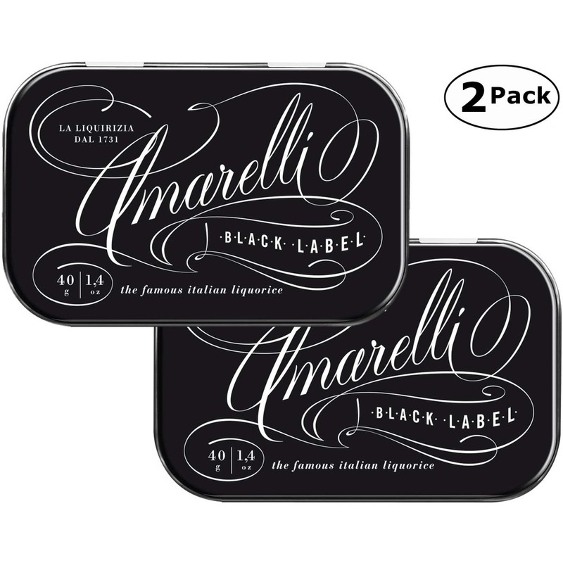 Amarelli tins Pure Liquorice Extract, The Famous Italian Liquorice, Black Label - 1.4 Oz (40 Gm) Each x 2 Tins