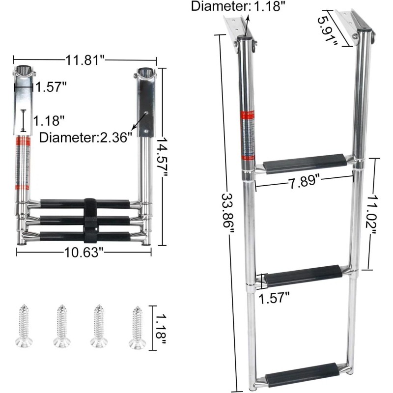 The 3 step telescopic boat ladder is made of high quality stainless steel.