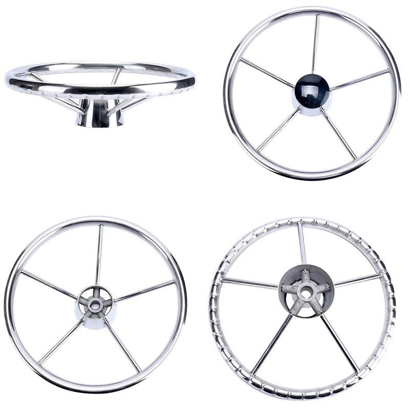 Amarine-made13-1/2 Inch 5-Spoke Destroyer Style Stainless Boat Steering Wheel