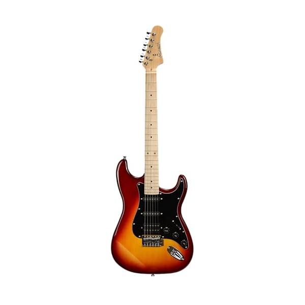 The Amati Classic Shape Electric Guitar (20STHG) combines timeless design with versatile playability. Featuring a double-cutaway poplar body in stunning Gloss Cherry Sunburst finish, this guitar delivers exceptional value for advancing players. The comfortable maple neck and fingerboard pair with a sophisticated pickup configuration - two single-coils and one humbucker - allowing for extensive tonal exploration. The 25.5" scale length and 22-fret design provide familiar playability, while the vintage-style tremolo bridge offers expressive pitch control.