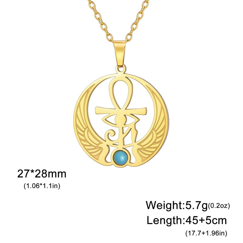 Amaxer Ankh Cross Eye of Horus Necklace with Moonstone Turquoise Antique Egyptian Symbol Ankh Cross Stainless Steel Religious Pendant Necklace, Stainless Steel, No Gemstone