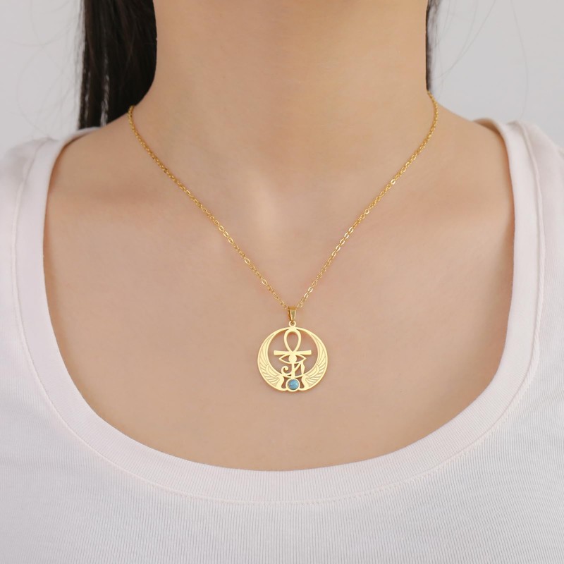 Amaxer Ankh Cross Eye of Horus Necklace with Moonstone Turquoise Antique Egyptian Symbol Ankh Cross Stainless Steel Religious Pendant Necklace, Stainless Steel, No Gemstone