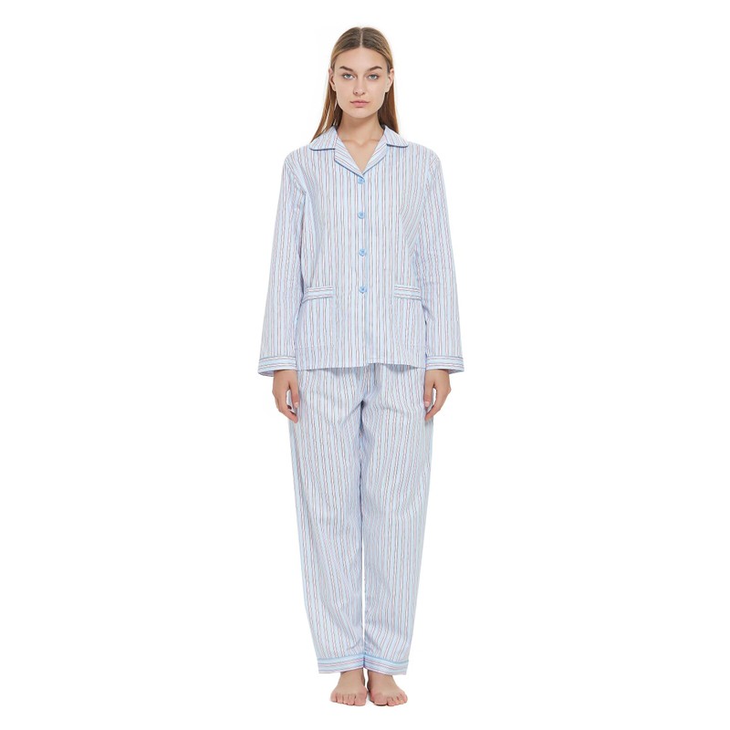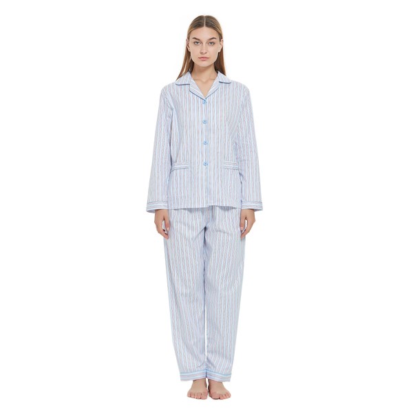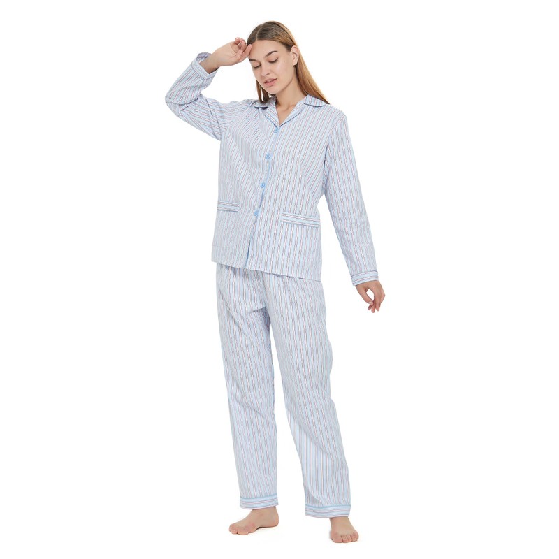 - [Long Sleeve Pajama Top] The long sleeve cotton pajamas for women are designed in classic notched collar and full button. The pocket on both side of the pajama top can be used to store your key, mobile phone, which is more convenient