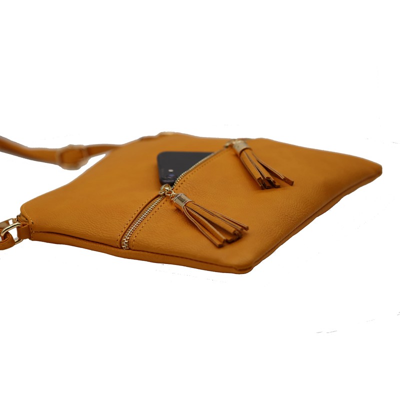 - Elevate Your Style - Add a touch of glam to your outfit with our womens crossbody bag. It features an adjustable strap and a zippered front pocket with a tassel and elegant gold tone hardware.