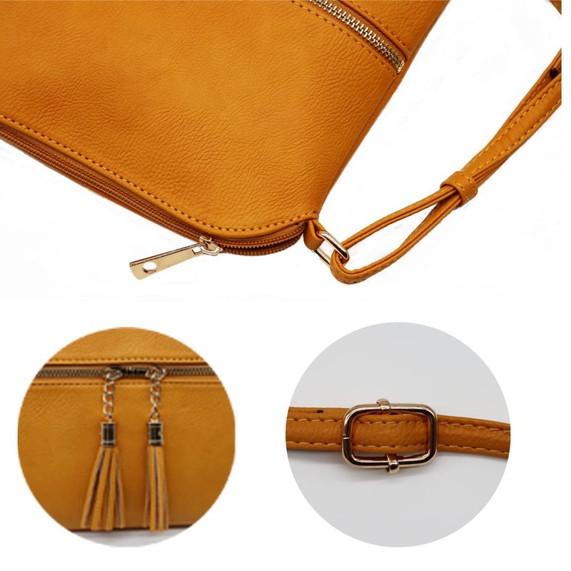 - Elevate Your Style - Add a touch of glam to your outfit with our womens crossbody bag. It features an adjustable strap and a zippered front pocket with a tassel and elegant gold tone hardware.
