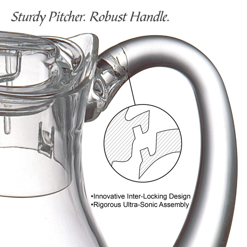 - [DRINK SAFE] This acrylic pitcher is shatter-proof and break-resistant. Also, with its sturdy handle and stable base, it is safe and durable for your everyday use.