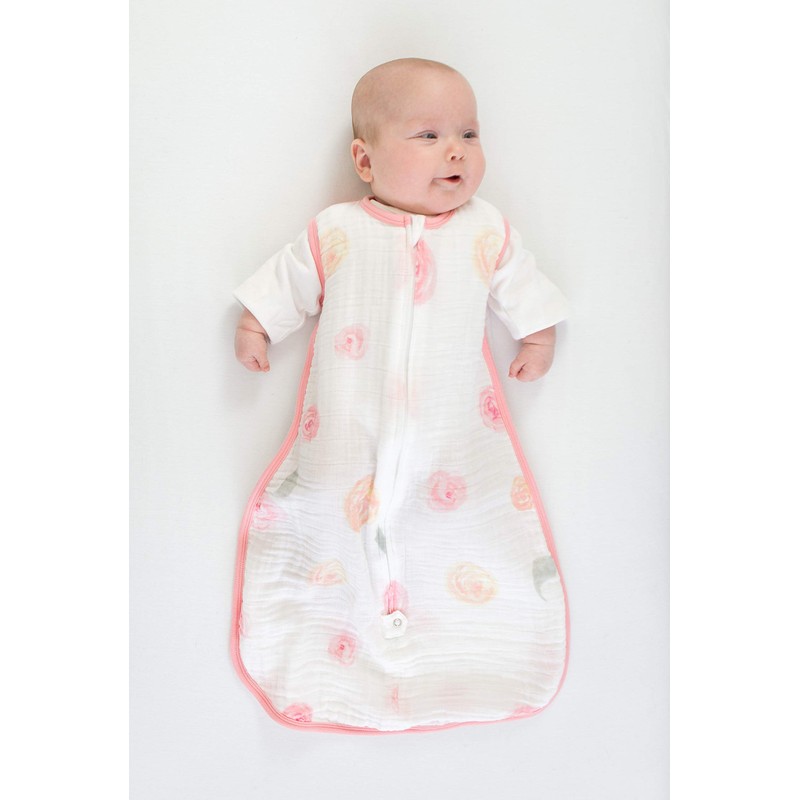 Amazing Baby Muslin Sleeping Sack with 2-Way Zipper, Watercolor Roses, Pink, Small