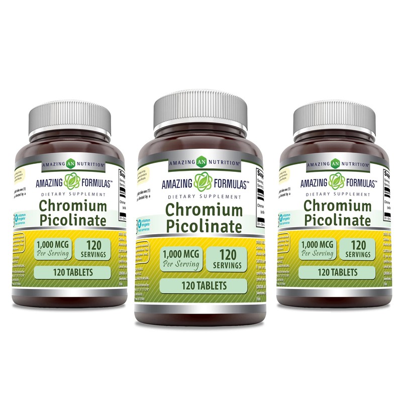 Amazing Formulas Chromium Picolinate 1000mcg Tablets Supplement | Non-GMO | Gluten Free | Made in USA (120 Count | 3 Pack)