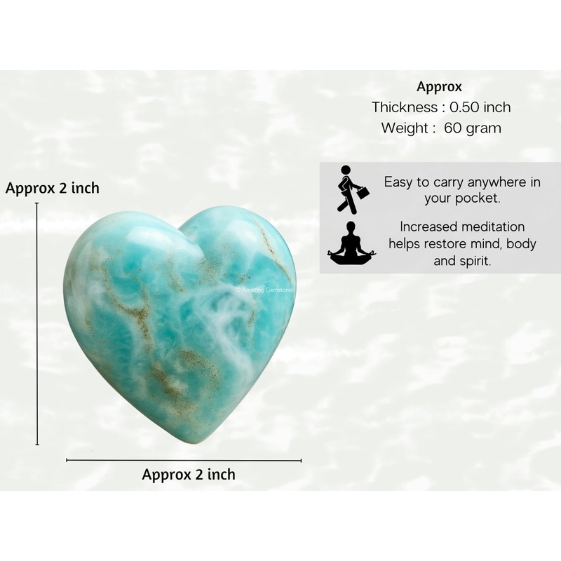 Amazing Gemstone Amazing Gemstone Caribbean Calcite Crystal Heart Palm Stone - Pocket Massage Worry Stone for Natural Body Chakra Balancing, Reiki Healing and Crystal Grid