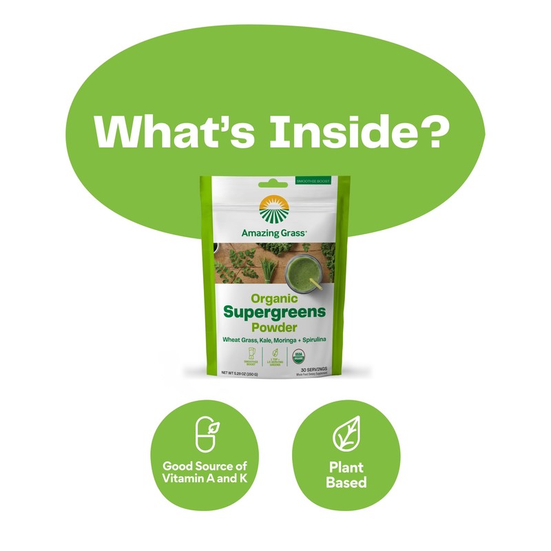 Amazing Grass Super Greens Booster: Greens Powder Smoothie Mix with Spirulina, Moringa, Wheat Grass & Kale Smoothie Booster, Chlorophyll Providing Greens, 30 Servings