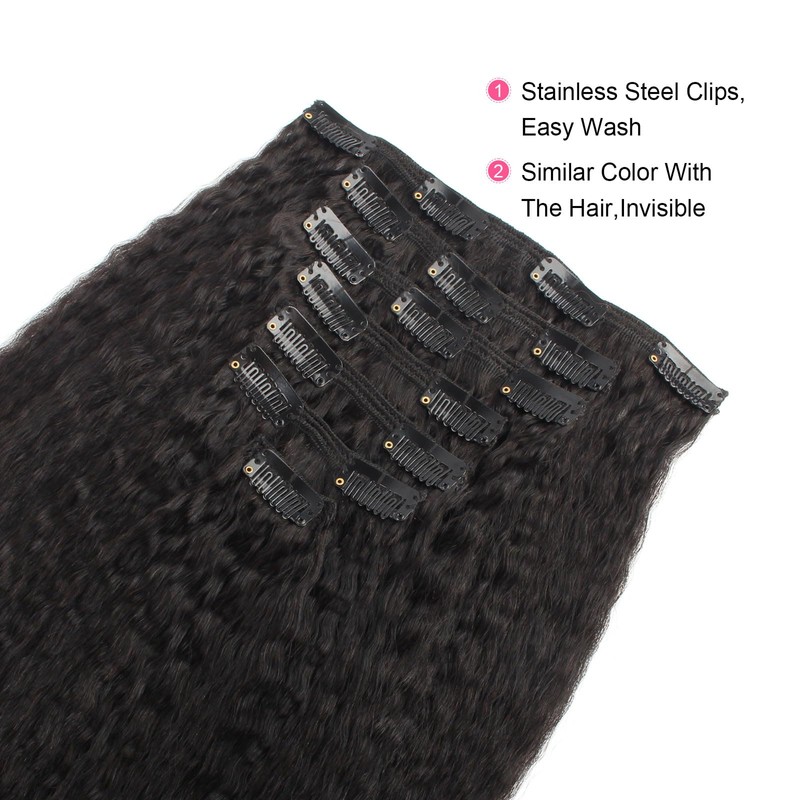 AmazingBeauty Clip In Hair Extensions Afro Kinky Straight 8A Grade Thick 100% Remy Hair Natural Black 10-22inch 7 Pieces with 18 Clips 120g/4.2oz per Set Fit For Full Head 16 inch