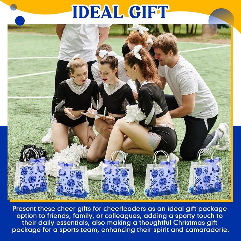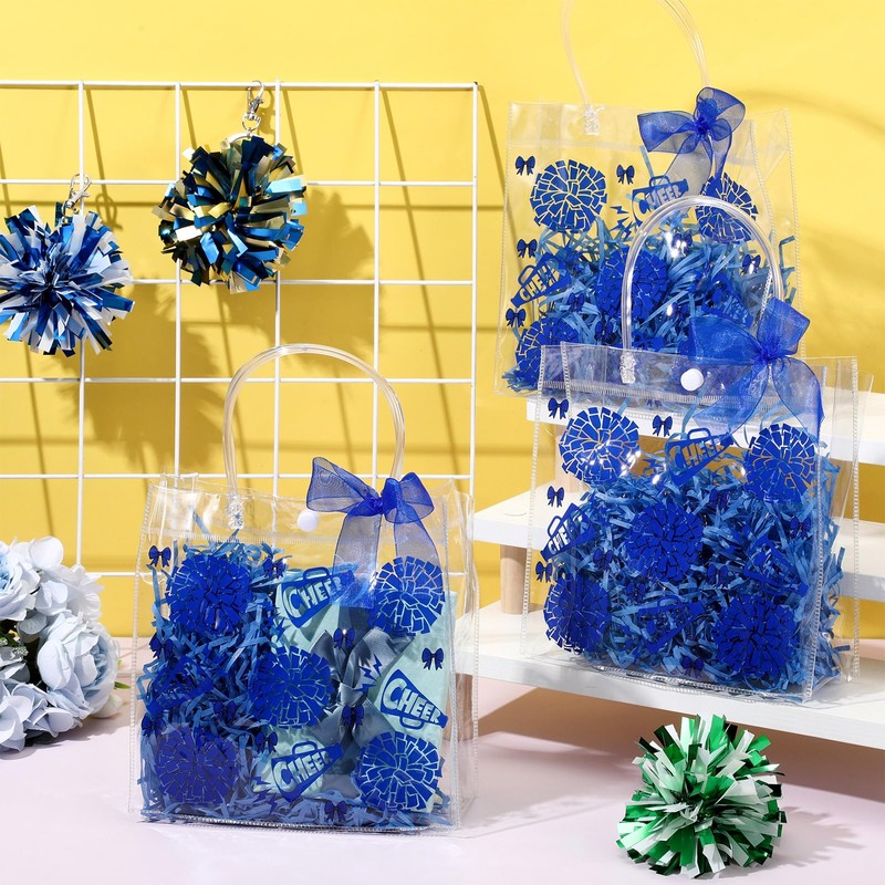 - Vibrant Cheer Party Design: featuring printed images of cheering balls, trumpets, and bows, these clear tote bags create a lively and joyful atmosphere that nicely complements a cheer themed party