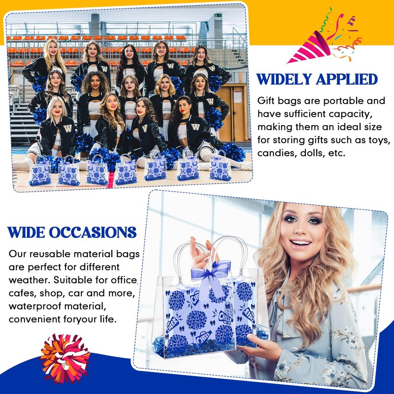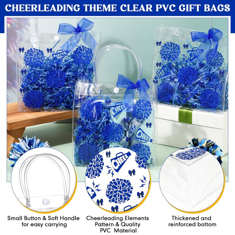 AmazingSpark 20 Set Cheer Clear PVC Gift Bags with Handles, Reusable Party Favor Bags with Raffia Ribbon Transparent Plastic Gift Bag for Cheer Team Cheerleader Cheerleading Competition(Blue)