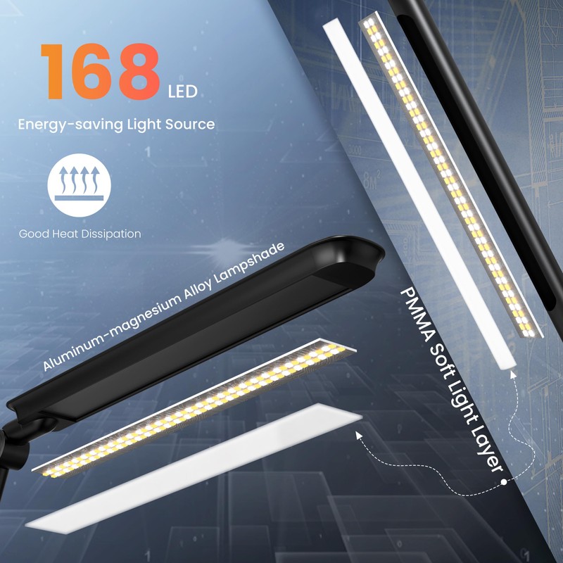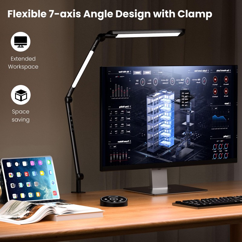 - 【Eye-care Multi-purpose LED Desk Lamp】 - 16" long swivel lamp head is powered by 84 SMD LED chips, High-quality bright light source and high CRI 95 restores the real color of the objects which helps reduce strain on the eyes, ideal for reading, working, drafting, relaxing, drawing, knitting, sewing, hobby, hands craft, etc