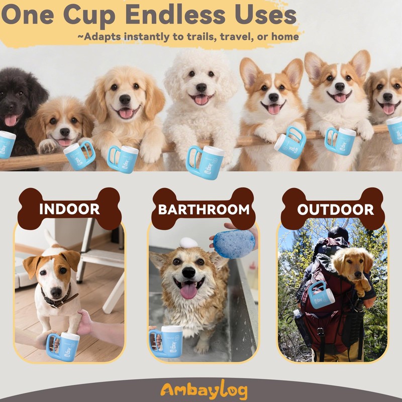 - 🐾【One-Hand Magic】PRESS & CLEAN IN SECONDS Ergonomic press design requires minimal effort - 360° paw cleaning with a single squeeze. Add pet shampoo (sold separately) for stubborn dirt.