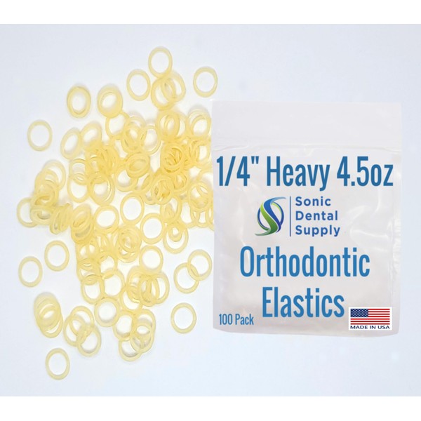 1/4 Inch Orthodontic Elastic Rubber Bands - 100 Pack - Natural Latex, Medium 4.5 Ounce Small Rubberbands, Braces, Dreadlocks Hair Braids, Tooth Gap, Packaging, Crafts - Sonic Dental - Made in USA
